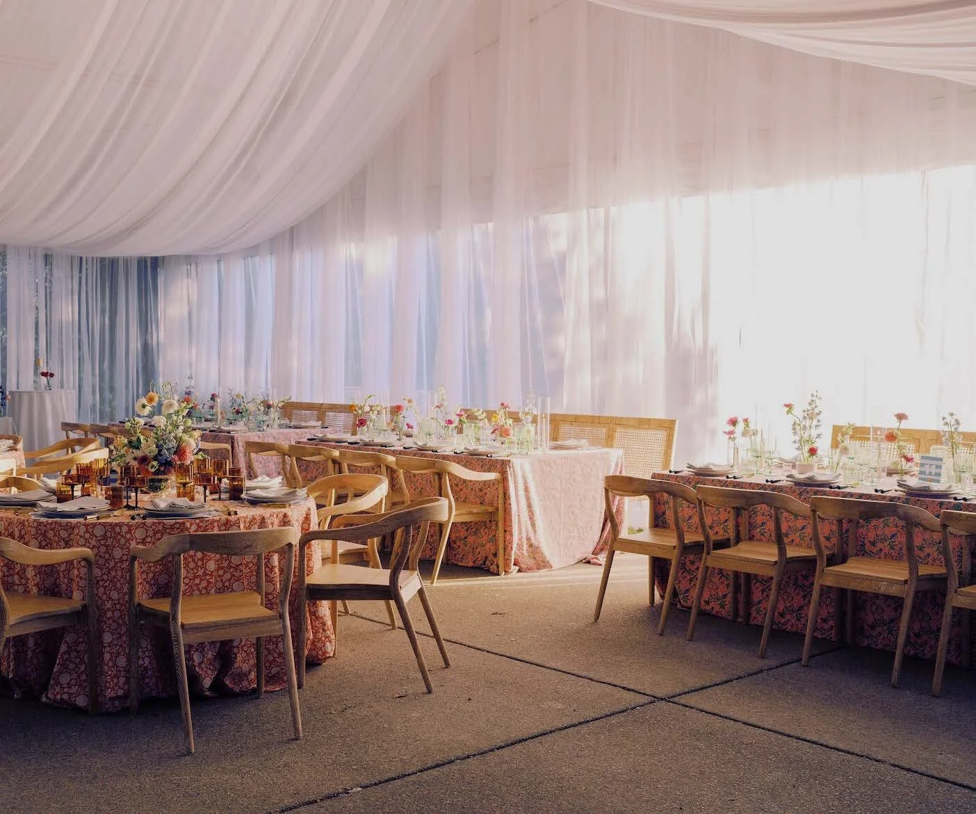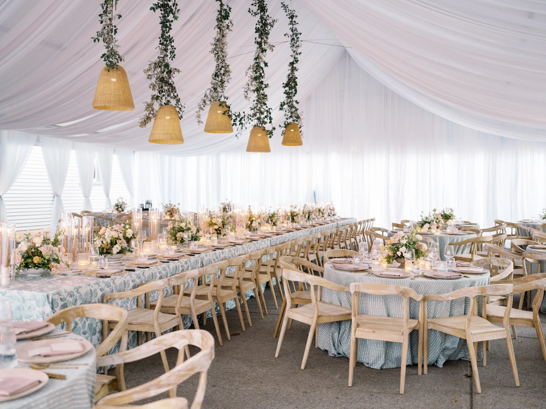 Full Tent Ceiling & Perimeter Draping With Rattan Lighting
